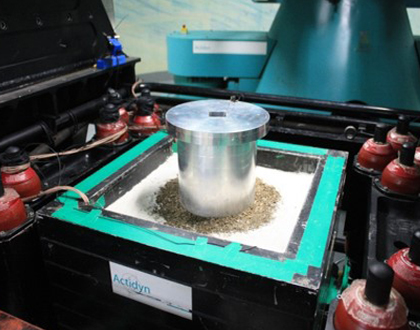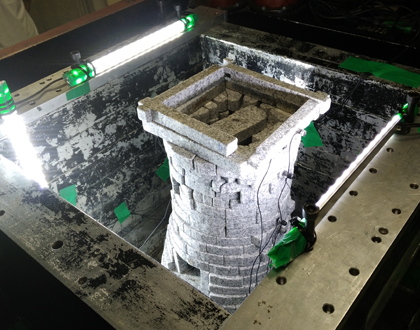 - 진동대를 이용해 원심력이 작용하는 축소 모형에 지진을 모사하는 실험을 수행합니다.