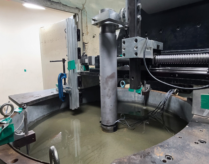 - 원심력이 작용하는 해양 기초 모형에 파도, 바람 등 외력을 모사하는 실험을 수행합니다.